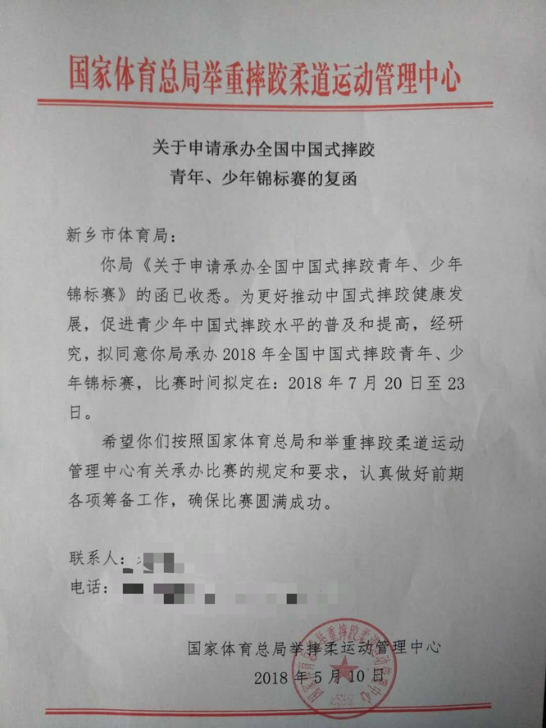 2018年7月22日,“全國(guó)中式摔跤青少年錦標(biāo)賽”將于河南省新鄉(xiāng)市盛大啟動(dòng),此次賽事由新鄉(xiāng)市政府承辦。作為國(guó)家頂級(jí)賽事,共有來(lái)自全國(guó)三十多個(gè)省市自治區(qū)的60余支隊(duì)伍、600多名運(yùn)動(dòng)員參賽。